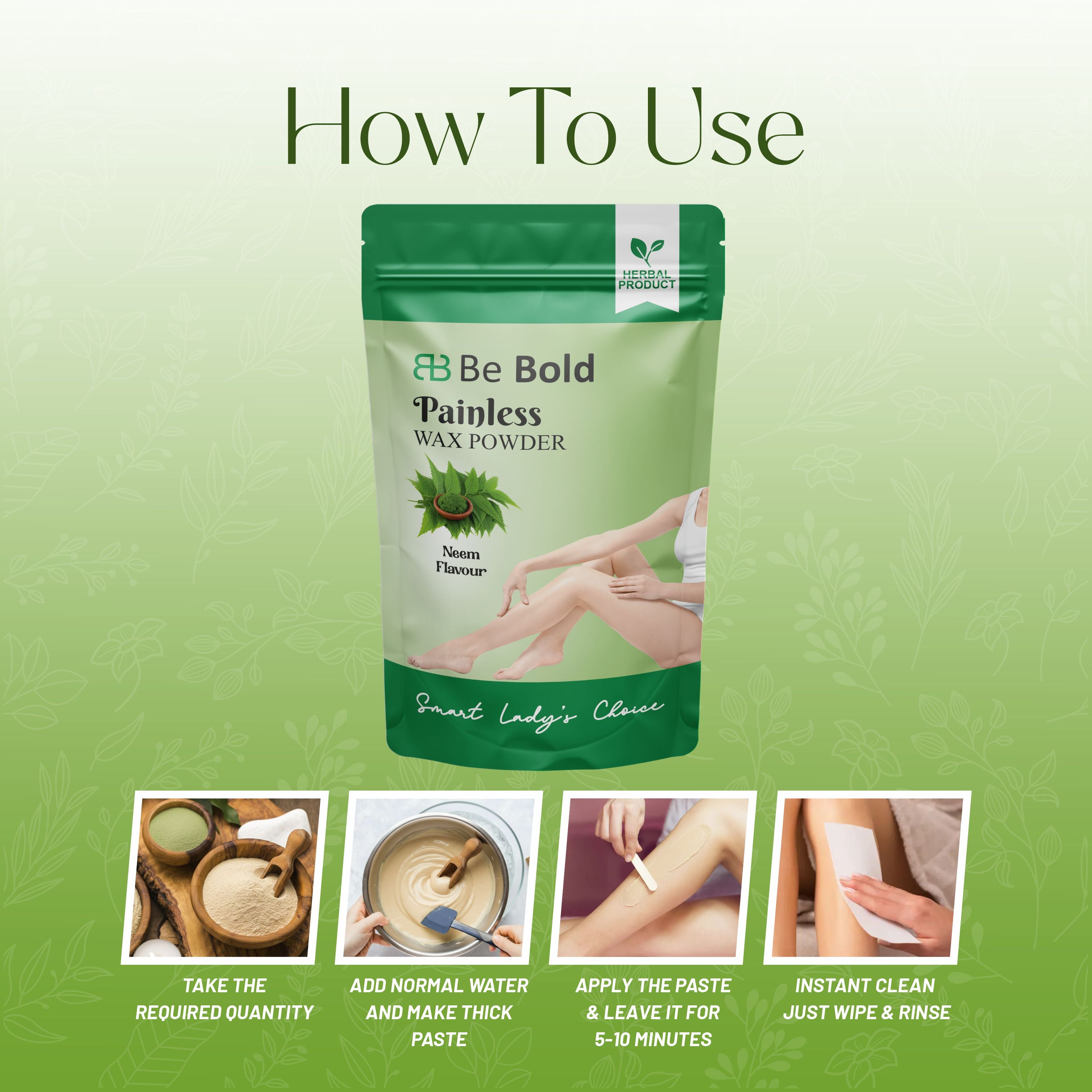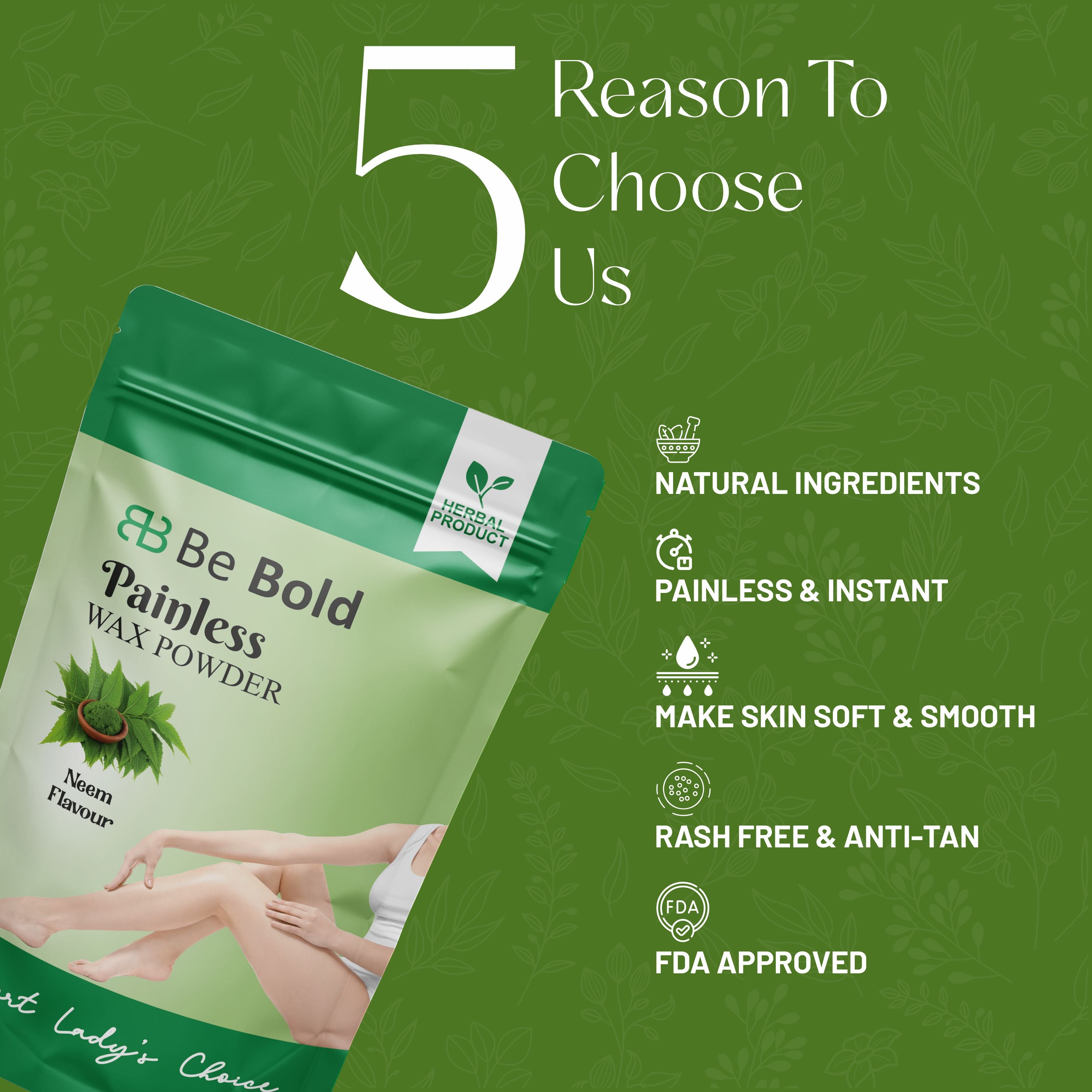 Achieve smooth, hair-free skin with the natural goodness of Neem using Be Bold Painless Wax Powder (Neem Flavour). Known for its antibacterial and purifying properties, Neem ensures a clean, irritation-free waxing experience. Perfect for sensitive skin and safe for regular use.